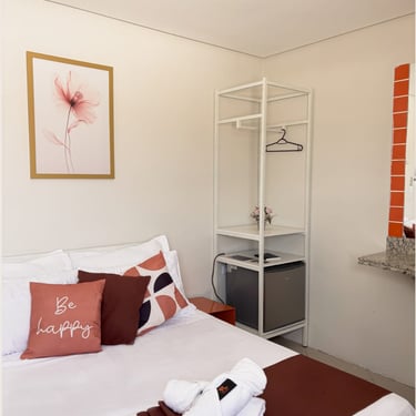 Perfeito para momentos de descanso e conforto, nosso quarto foi cuidadosamente planejado para oferecer uma experiência acolhedora e sofisticada. Com uma decoração elegante, iluminação suave e móveis funcionais, o ambiente transmite tranquilidade e bem-estar. Ideal para quem busca uma estadia relaxante, com charme e bom gosto em cada detalhe.